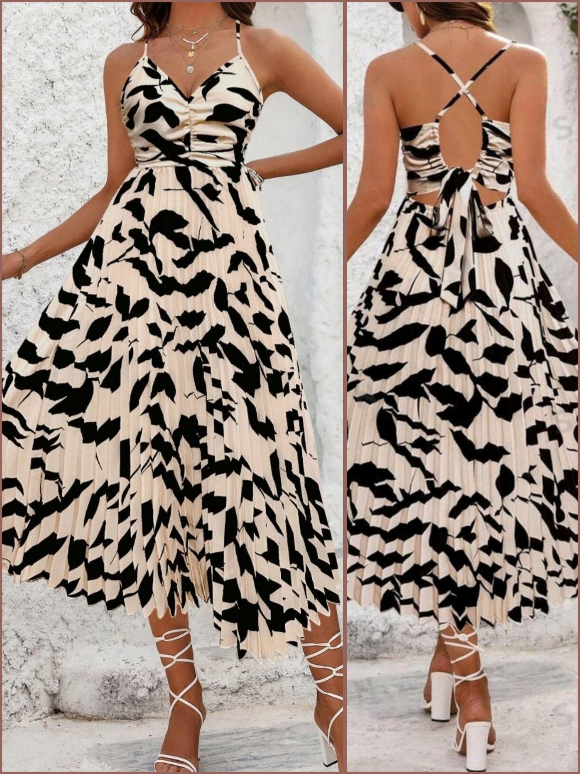 #4814 Plant Printed Halter Neck Long Dress