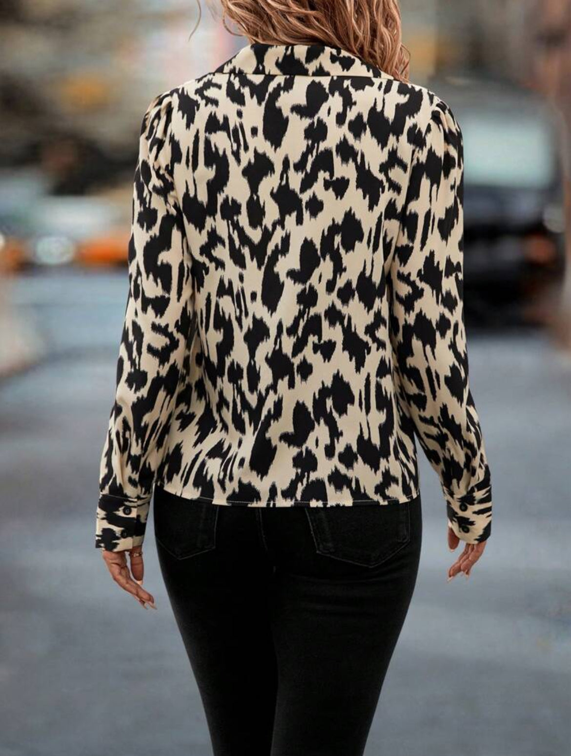 #0609 Allover Print Button Up Long Sleeve Top