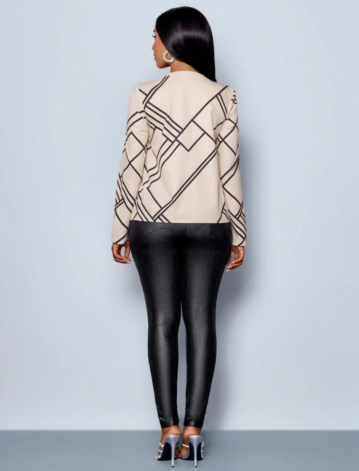 #8687 Apricot Line Print V-Neck Long Sleeve