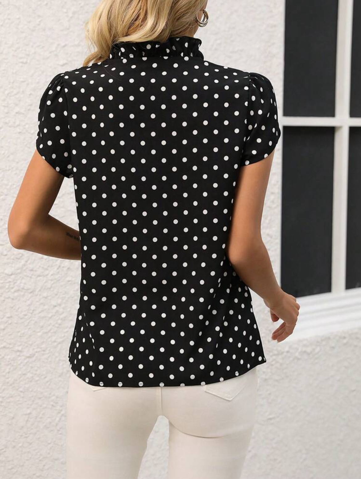 #2777 Polka Dot Shirt With Frill Trim Blouse