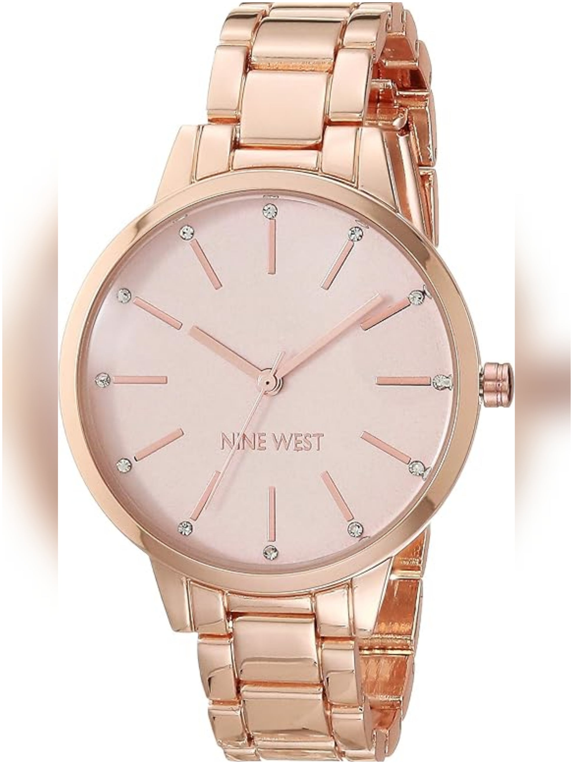 NW /2098PKRG Nine West Floral Dial Bracelet Watch - Rose Gold Tone